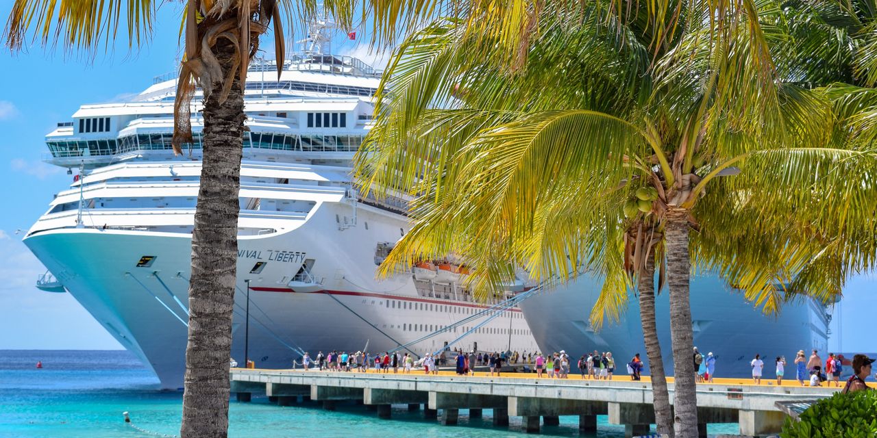 (ticker: CCL) declined 7.7% even after the cruise company posted a narrower-than-expected loss for its second quarter amid “continued acceleration of demand.” Peers