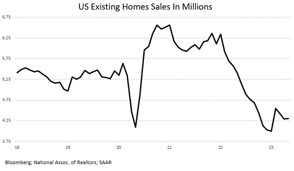 Nevertheless, the media and Wall Street continue to push the “soft landing” or even “no landing” scenario based on the “resilient” labor market and a few positive blips, like the +22% rise in housing starts or a +0.2% rise in May’s existing home sales. Regarding the latter, those sales are still down -20% from year-earlier levels (see chart). So, no, that’s not a positive for the economy.